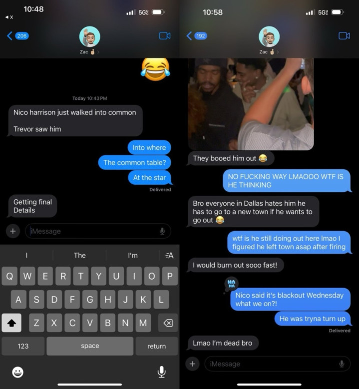 据推特名为“Noah”的达拉斯当地球迷爆料,尼科-哈里森想和妻子去达拉斯当地一家酒吧,结果他们被直接嘘走。这名球迷还晒出了自己和球迷的聊天记录,具体如下: