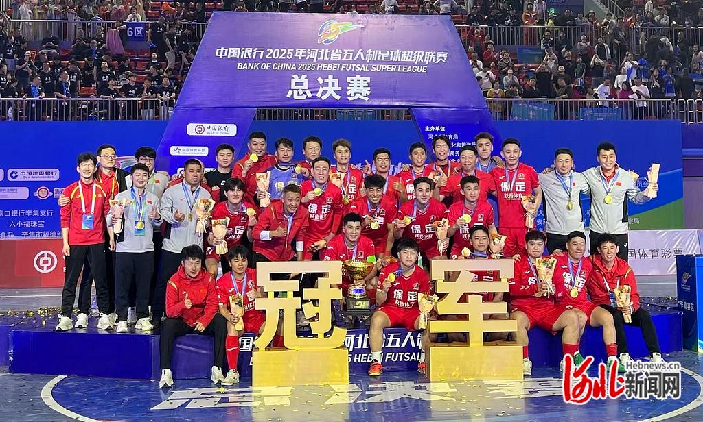 4月13日中午,保定高速路口,数百名球迷早早守候在此,迎接在“河北五超”夺得冠军的保定队,手中印有“保定”字样的旗帜猎猎飘扬。随着搭载保定队球员的大巴缓缓驶出高速,现场沸腾了,球迷们唱起保定队的队歌,高喊“保定是冠军”!就在前一天,4月12日晚上,2025年河北省五人制足球超级联赛在辛集市澳森全民健身中心落下帷幕。保定队在决赛中以5:1战胜张家口队,捧起了这座凝聚着无数人汗水的冠军奖杯。
