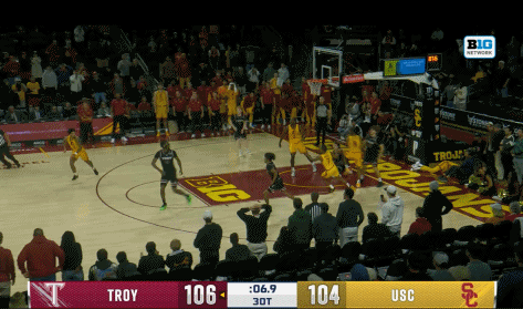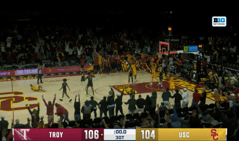 第三个加时特洛伊大学最后时刻拥有2分领先优势,但是传球出现失误,南加州大学球员乔丹·马什面对贴防失去平衡,最后1秒歪着身子上演极限三分绝杀,最终南加州大学107-106险胜特洛伊大学。