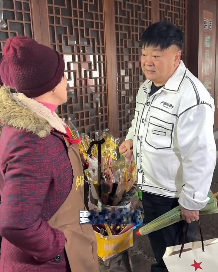 事件经过是这样的,洪剑涛在古镇上闲逛时,看到一个老太太在街边摆了一个小摊儿,卖一些小东西,各种各样的小玩具和文创品。
